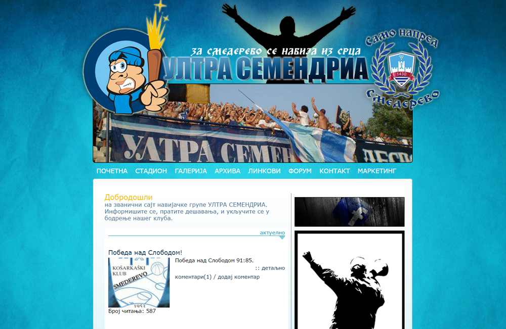 I started work on this site. This was a sport portal, which focus were at result and news of football, basketball, handball and volleyball club in Smederevo.